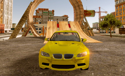 In this crazy and silly car game, you drive around a city and do cool tricks with cars. You can walk and drive around, and jump over, under and through cool ramps and loops!