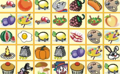 In this thinking game, you can combine two identical pictures of fruit and vegetables by tapping on them. However, you can only clear away the pairs if you can draw a connecting line between them. This line may make no more than two ninety-degree bends, and may not run through any other tiles. You can also combine two tiles that are lying directly next to one another.