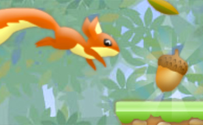 Your squirrel runs forward automatically. What you need to do is time his jumps over the platforms so that he does not fall down. Use your left mouse button to jump, a short tap will result in a small jump, and holding down the mouse button will give you a longer jump. You need to switch between these jumps to avoid all the obstacles and collect all the acorns at the same time.