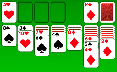 This card solitaire game is played with a single deck of cards. The cards are shuffled and then placed on the table in seven columns. Only the bottom card of each column is turned face up. The rest is left face down. This part of the game’s layout is called the tableau. All the cards that are left over after creating the tableau are stacked on top of each other and placed face down in one corner. This stack is called the stockpile or stock.